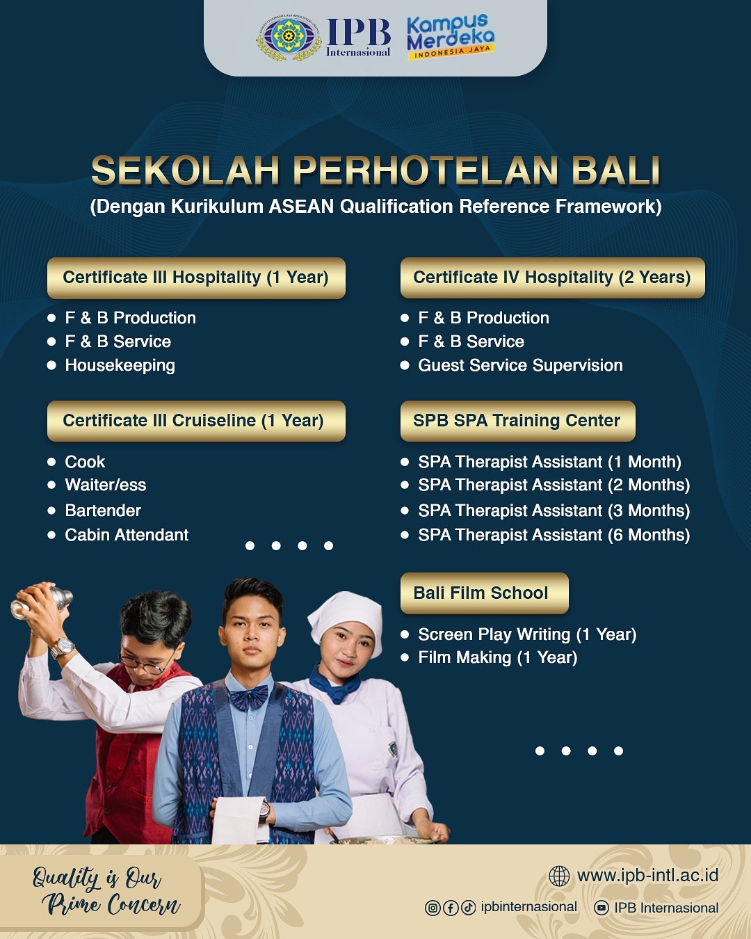 Bersiaplah untuk memulai perjalanan menuju masa depan gemilang bersama IPB Internasional & Sekolah Perhotelan Bali, kampus terbaik di bidang Pariwisata, Perhotelan, dan Bisnis di Bali!